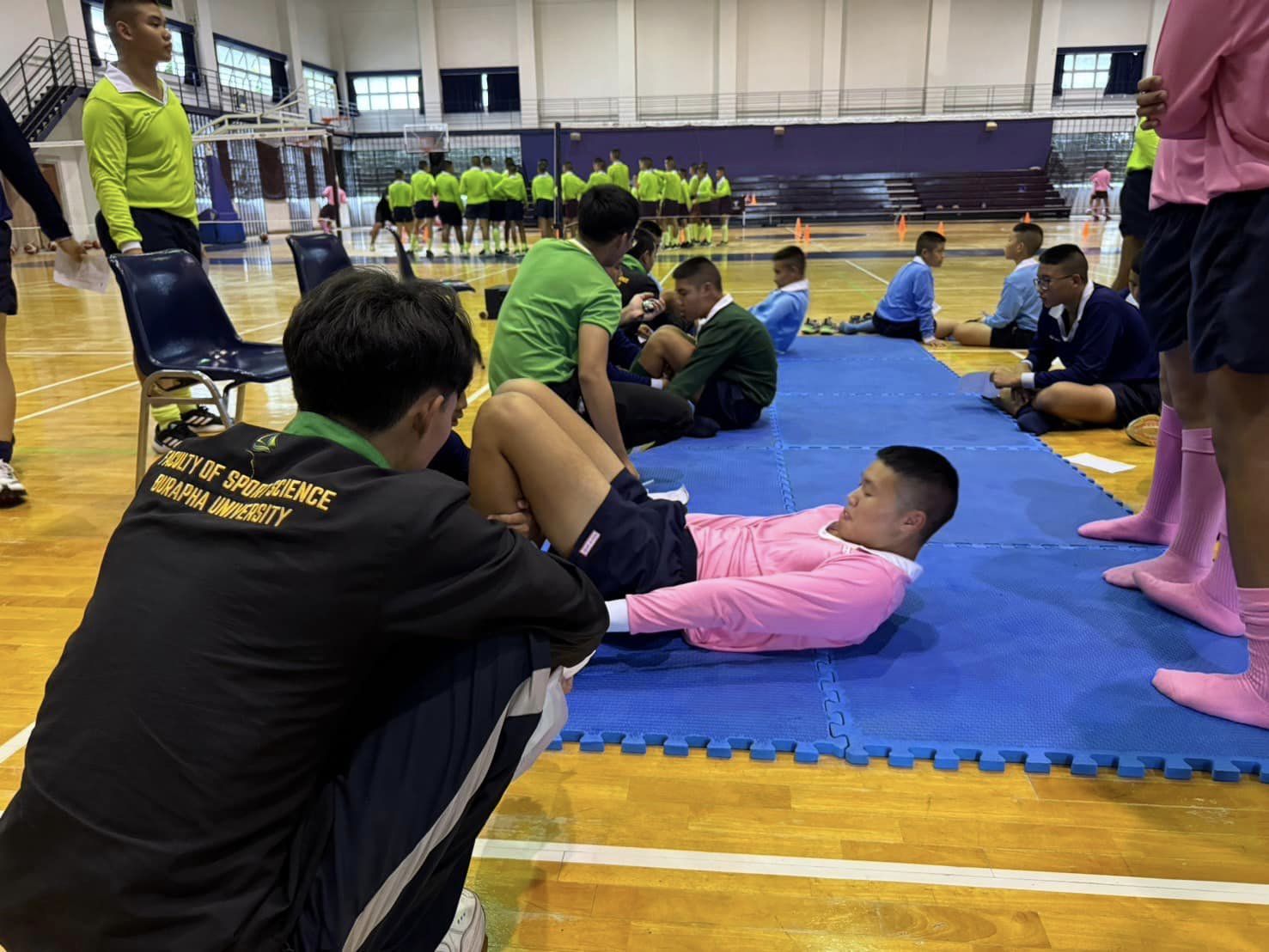 คณะวิทยาศาสตร์การกีฬา มหาวิทยาลัยบูรพาโดย ผศ.ดร.วิรัตน์ สนธิ์จันทร์ รองคณบดีฝ่ายวิชาการและพัฒนาคุณภาพการศึกษา และ ดร.พิชยา นพกาล นำนิสิตชั้นปีที่ 4 สาขาวิชาวิทยาศาสตร์การออกกำลังกายและการกีฬา ให้บริการวิชาการทดสอบสมรรถภาพทางกายประจำปีให้กับนักเรียนโรงเรียนวชิราวุธวิทยาลัย มีการทดสอบ 9 สถานี ได้แก่ ชั่งน้ำหนัก วัดส่วนสูง ยืนกระโดดไกล ดันพื้น ลุก-นั่ง นั่งก้มตัวด้านหน้า วิ่งซิกแซก วิ่ง 30 เมตรและวิ่ง 1,600 เมตร ทดสอบนักเรียนมัธยมศึกษาปีที่ 1-6 ระหว่างวันที่ 15-18 กรกฎาคม และ 20-22 สิงหาคม 2567 โดยการทดสอบสมรรถภาพทางกายนักเรียนในครั้งนี้ เป็นกิจกรรมภายใต้ความร่วมมือทางวิชาการ ระหว่างคณะวิทยาศาสตร์การกีฬา มหาวิทยาลัยบูรพา กับ โรงเรียนวชิราวุธวิทยาลัย